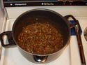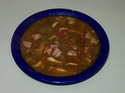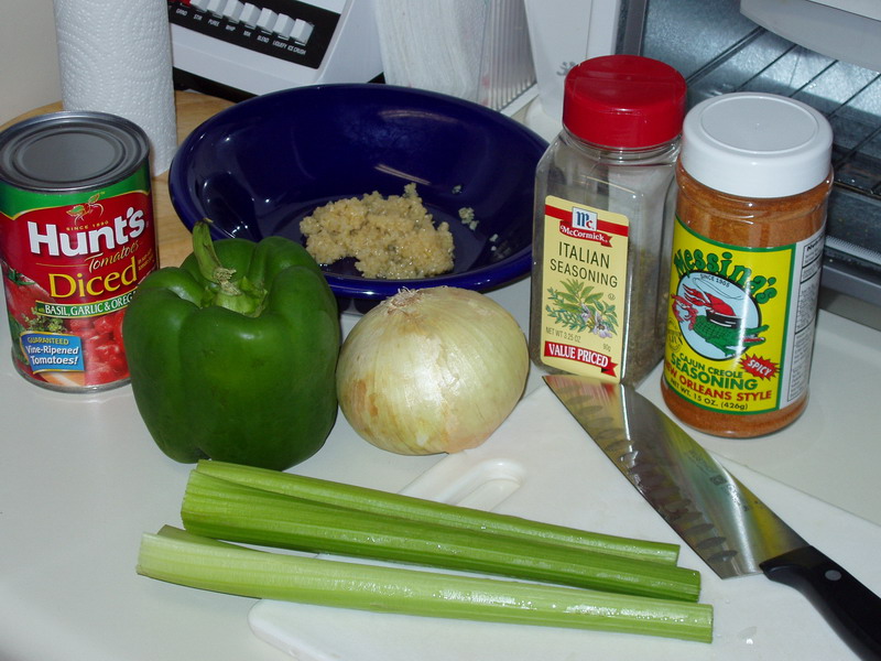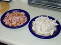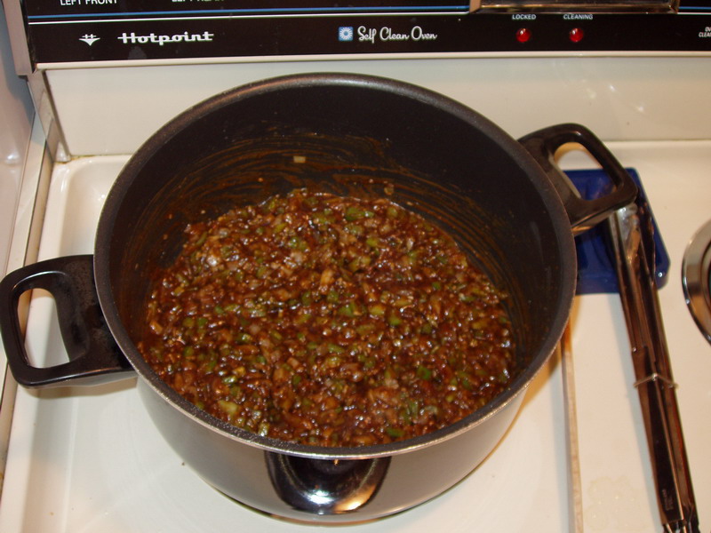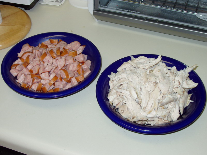 - Render sausage and ham in a separate pan with a bit of olive oil. When finished, remove from pan and drain on a plate with a paper towel.