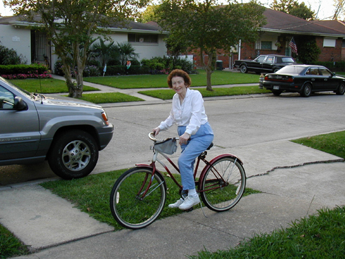 riding her bike |